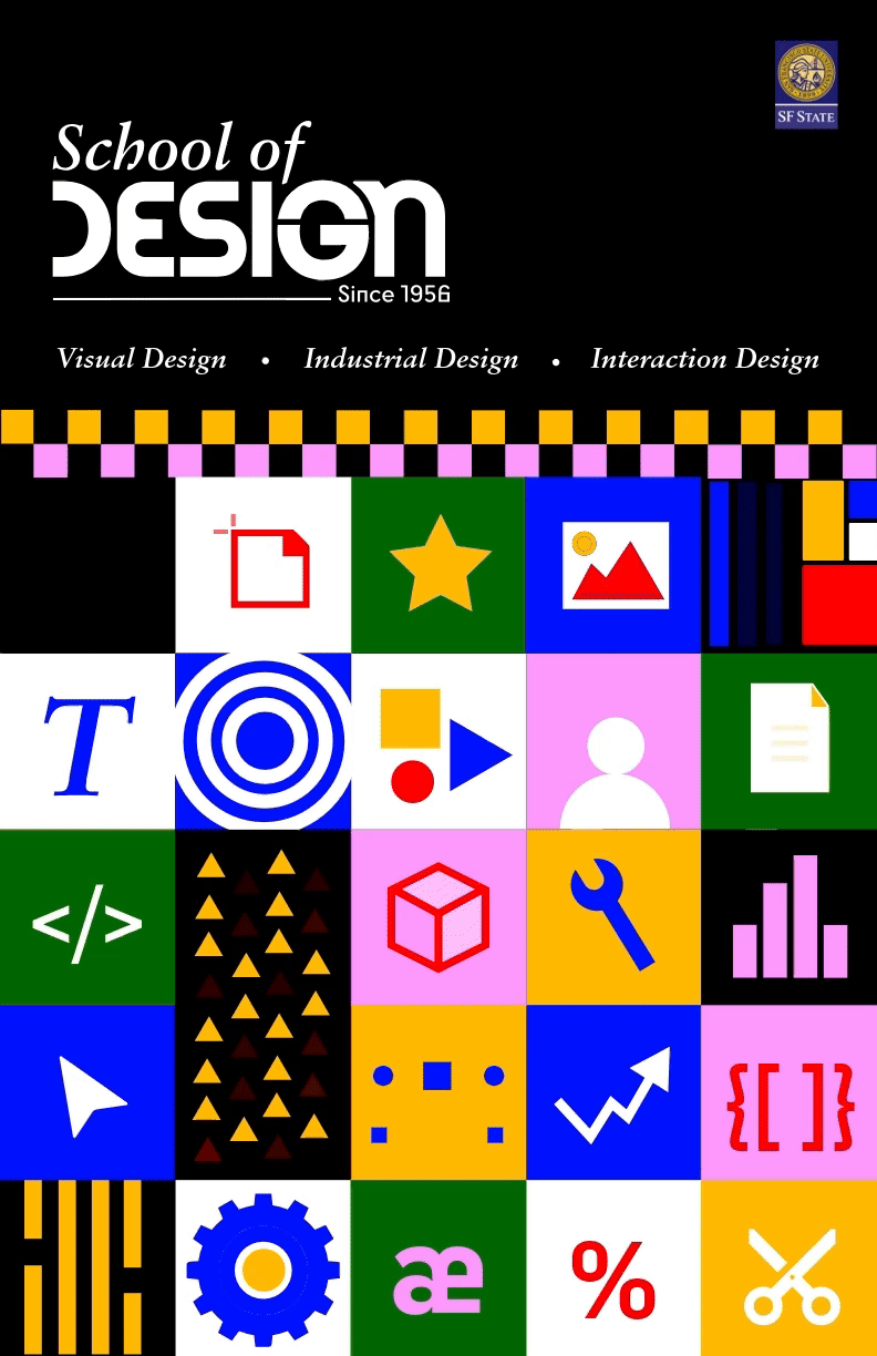 Redesigned the brand identity for San Francisco State University’s School of Design, using the school’s diverse faculty & student body as an inspiration to inform my design decisions.